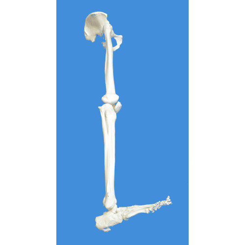 This life size right leg skeleton model includes Pelvis (half) with full size femur, patella , tibia and fibula, tarsals, metatarsals, phlanges. Articulated by wire for flexibility. It is anatomically detailed. Natural cast for accurate representation. Ideal for professional study of human anatomy.
