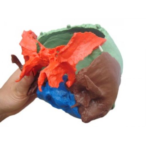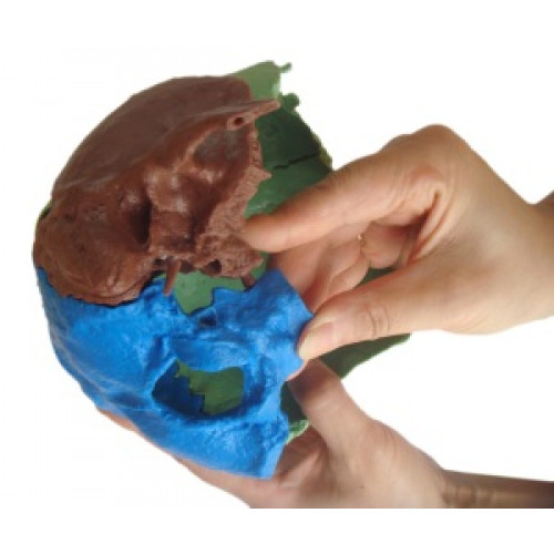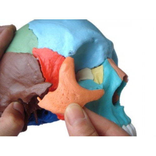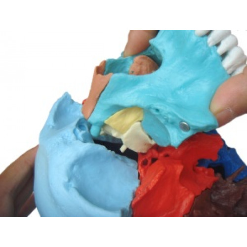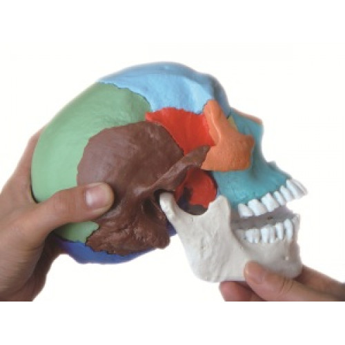Complete disarticulated adult skull in 22 parts (Didactic colored)