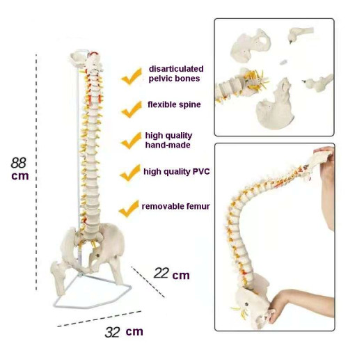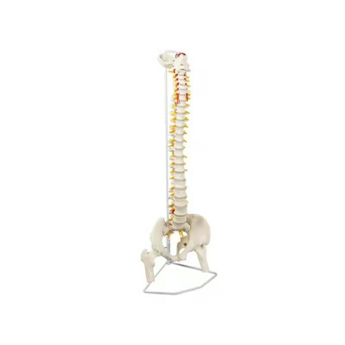 Brand new high quality natural cast, this fully flexible lift size vertebral column consists of the occipital plate, cervical, thoracic, lumbar vertebrae, sacrum, coccyx and complete pelvis, with movable, removable femur heads.