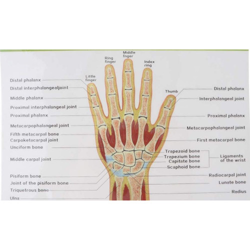 Highly detailed to show the structures of human hand joint skeleton, muscle, nerves, blood vessels, etc.
