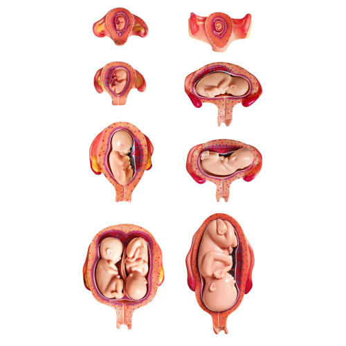 Study human development from the 4th week through the 7th month. Our most popular series include eight models to show the complete stages of development. All embryo or fetus models are shown in different typical positions in the uterus and each is mounted separately on an individual stand. The five later stages of development allow the fetus to be removed.