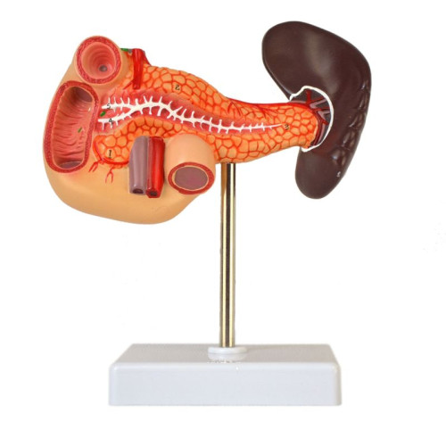 This model is life size. It is an accurate representation of the pancreas, spleen and duodenum.