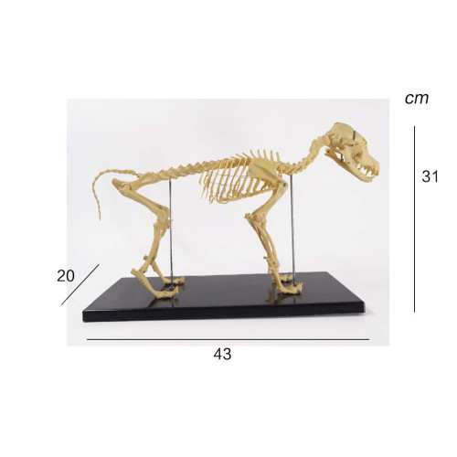 The small dog skeleton model is a detailed model of the skeletal structure of a small dog. It comes mounted on a base.