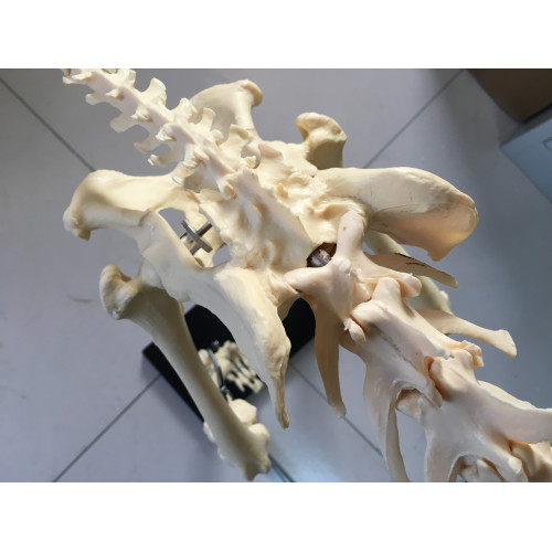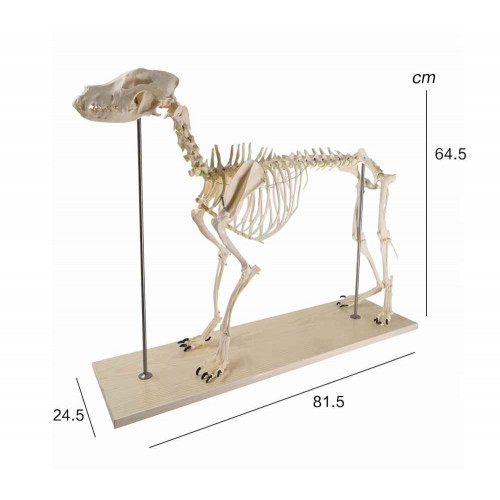 The flexible mounting makes demonstration of natural canine movements possible. Every bone of Canis domesticus is included in this complete real dog skeleton.